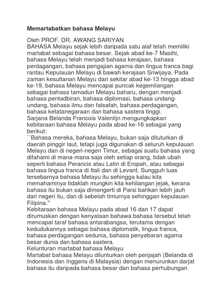 Memartabatkan Bahasa Melayu Jurnal Pdf